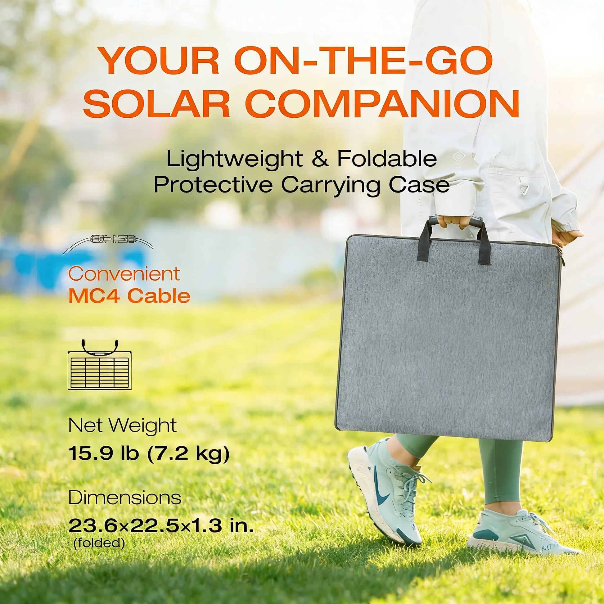 - [Compact and Portable] With a weight of only 15.9 lb, the foldable solar panel is ultra-lightweight and compact. It's perfect for on-the-go use, whether you're trekking, camping, or on a roadtrip.
