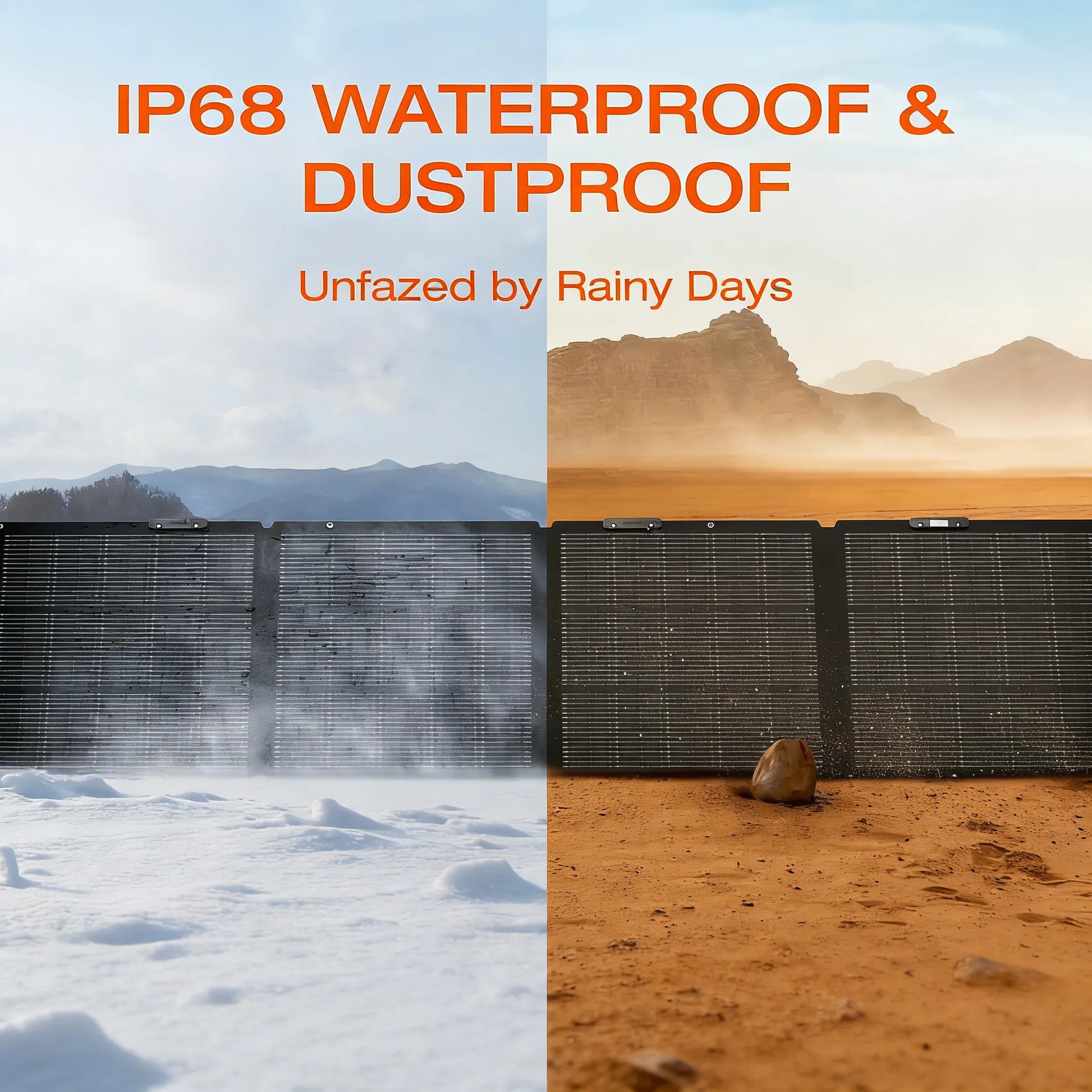 - [Water and Dust Resistant] Our portable solar panel boasts an IP68 rating, protecting against water and dust, making it an ideal choice for reliable energy source in diverse environments.