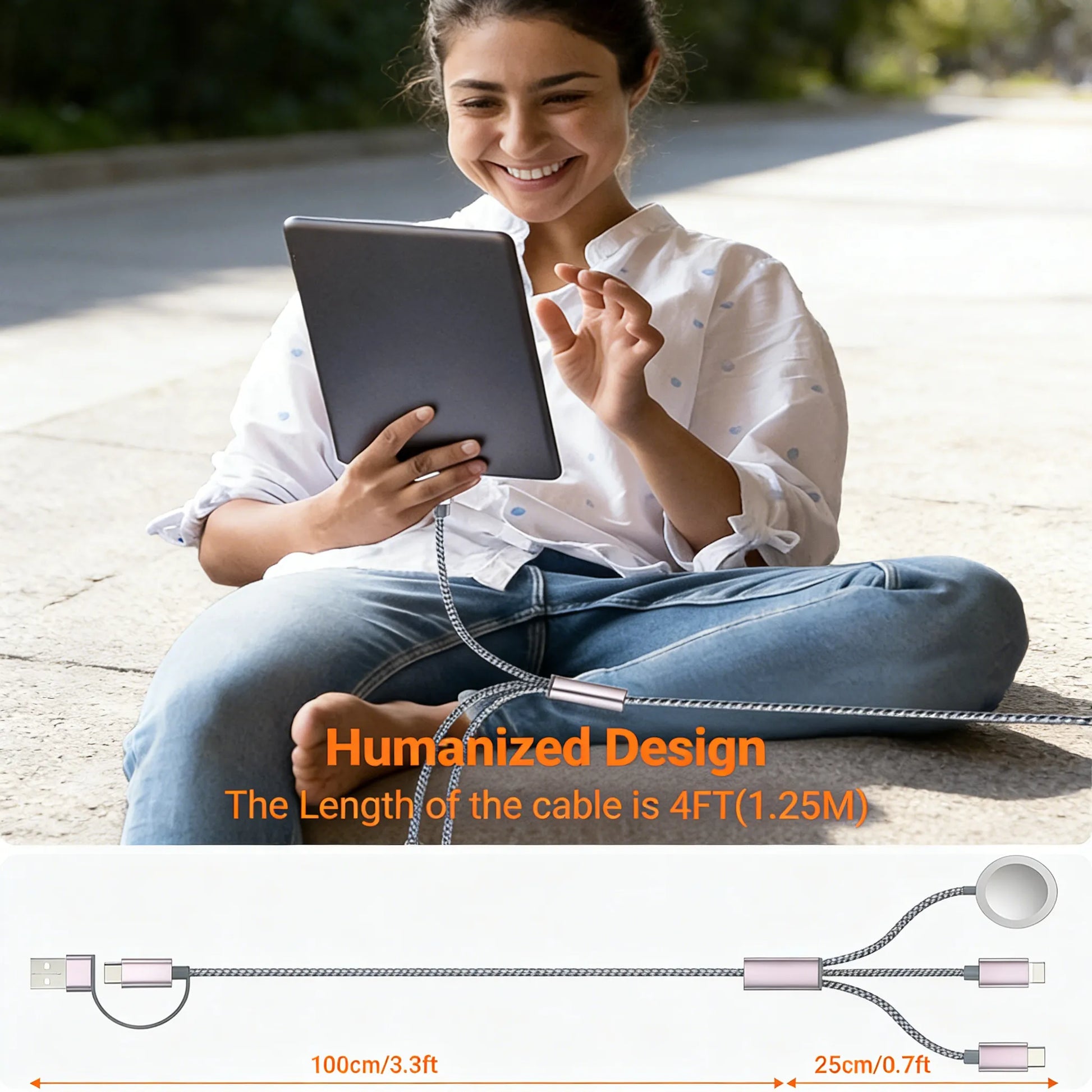 - 【Vacation Travel Essentials & Car Accessories & 4FT Length】Designed as travel cable.The 4ft 3-in-2 USB-C cable is a vacation travel essential, a must have car accessory,and perfect for your beach vacation essentials. Use this portable charging cable compatible with Apple Watch,iPhone,other USB-C/Lightning devices on airplanes, cruises, road trips in the car, or with power banks.