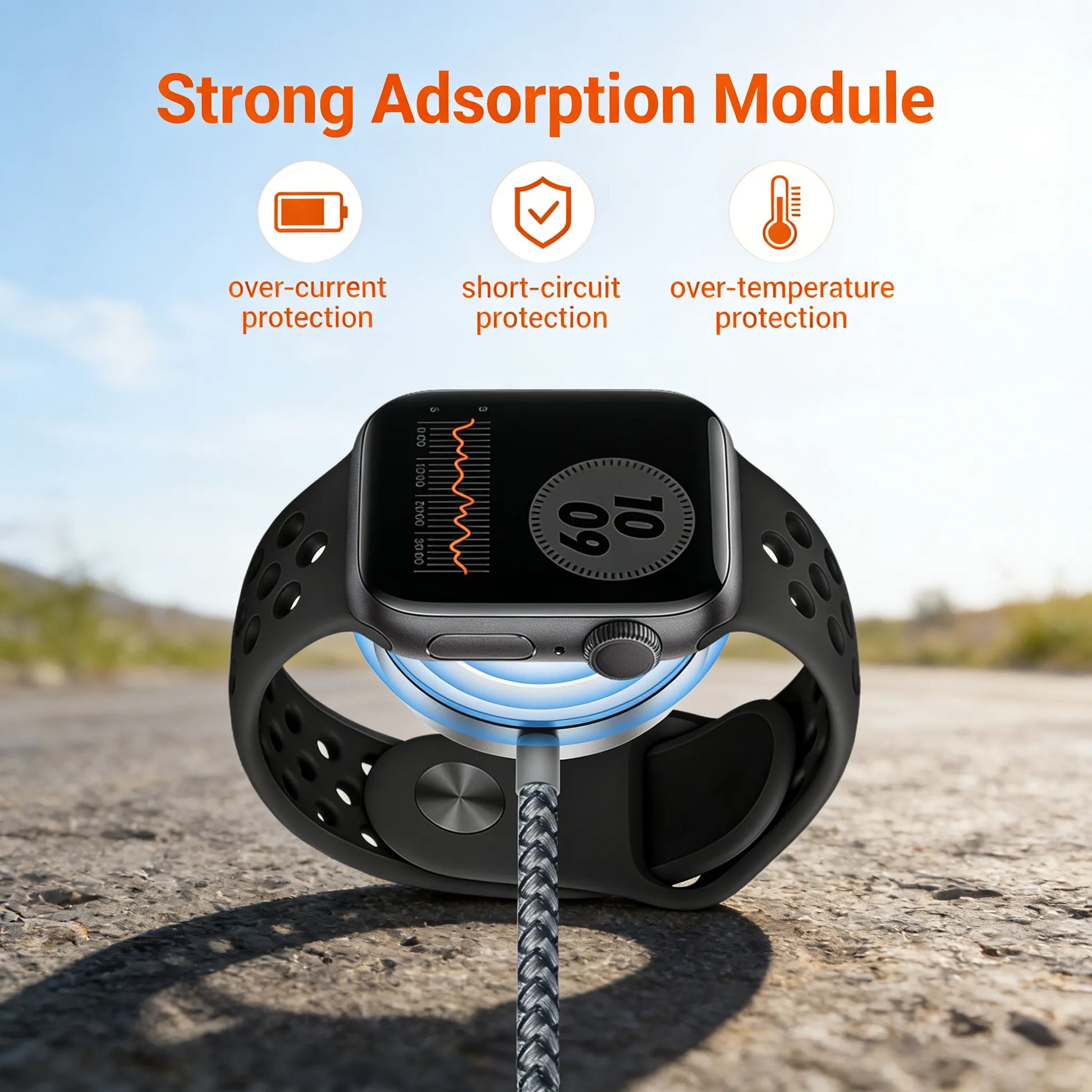 - 【Magnetic iWatch Charger】With auto-alignment magnetic technology, this charger effortlessly snaps into place, ensuring a secure and efficient charge as it automatically aligns with the back of your Apple Watch.(please note: for optimal charging, avoid using an Apple Watch protective case)
