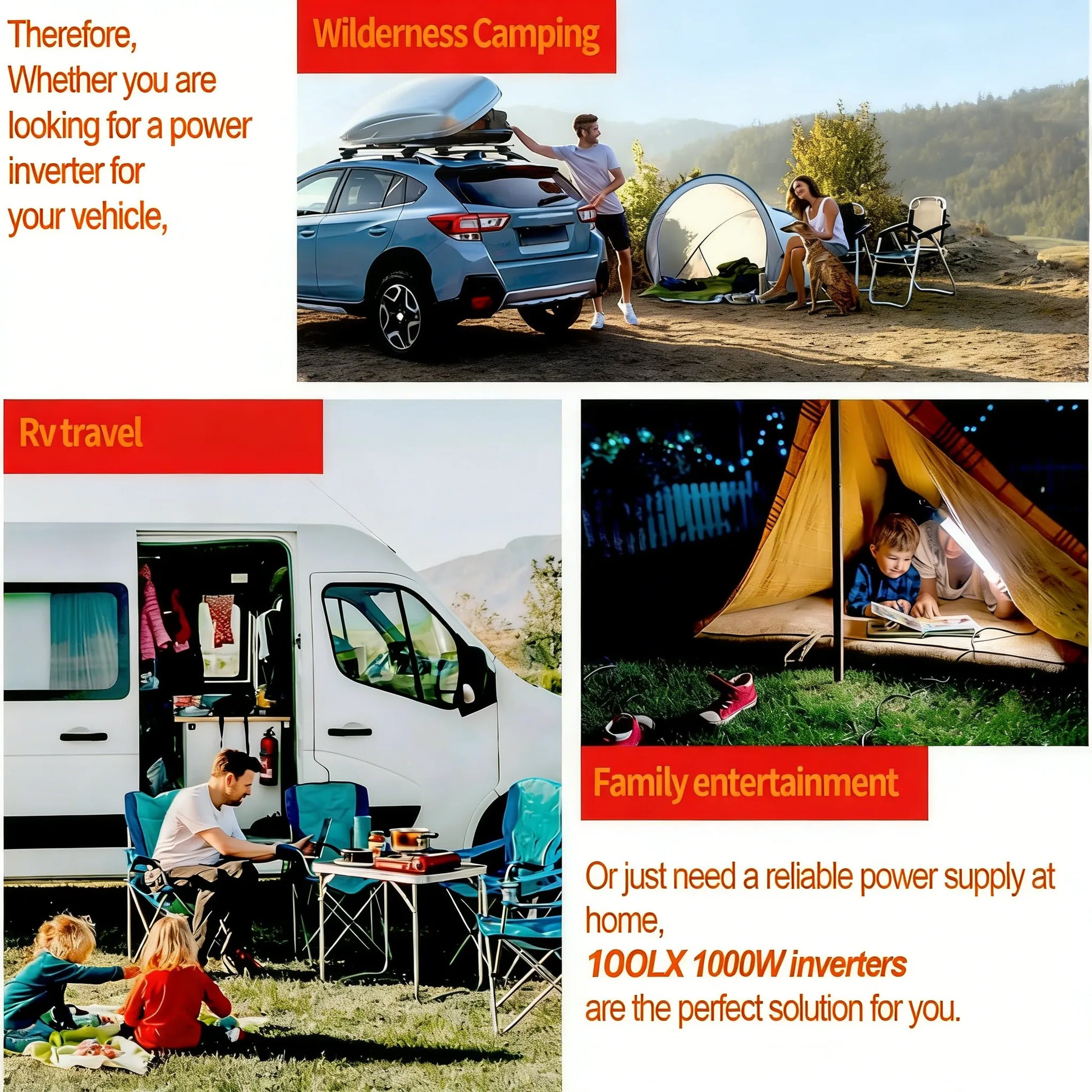 - 【What About the Inverter?】 - Three 110v 120v AC outlets Provides 1000 watts continuous DC to AC power and 2000 watts of peak power which can be used for Car,Home,RV,Solar.(Please confirm that your device is less than 1000W continuous power)